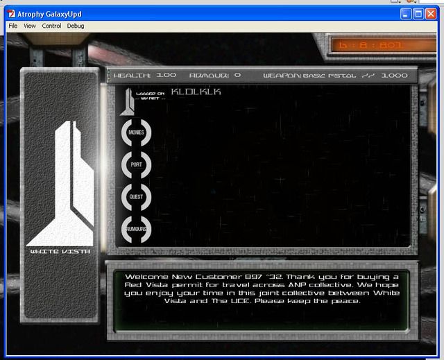 During my Easter holidays I started work on a flash game called 'Atrophy'. I'd been toying with a fictional universe I wanted to 'realise' so the first version of the game was going to be a puzzle game which would have lots of storyline going on; however I found about two weeks in that I really needed an artist to bring alive the ideas and I couldn't find one. So the plan changed but since I had exams things went very slowly and I only did programming in between revision.
