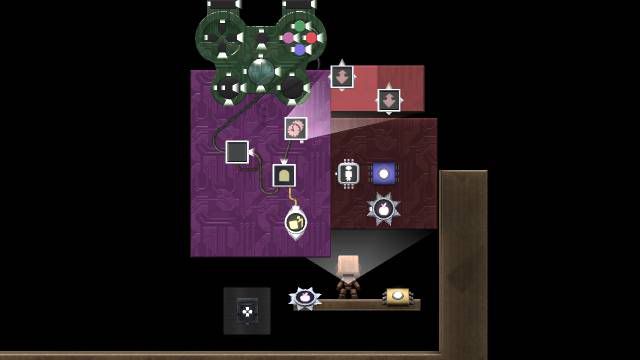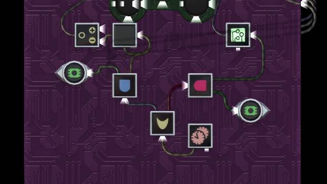 I used Down on the D-Pad as my Input for dropping through the platform this time, so I had to use a Directional Splitter's negative output. Hooked that up to a pulser, so that holding down doesn't make you keep dropping through platforms. You could remove the pulser if you wanted to, though. Wire it into an AND Gate, in my example, it's the blue one. The other input for the AND gate is the Tag Sensor for the Green "Below" Tag, which doesn't have to have a large detection radius, since the tag will always be close to the bot. Wire the AND Gate into the final OR Gate.