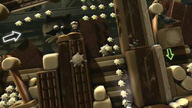 Gameplay: I played with a friend, and it was great fun. Perfectly compatiable for 2 players, but apart from that, the whole level being a race really gave exciting gameplay. Also I loved your use of all the tools available to sackboy.