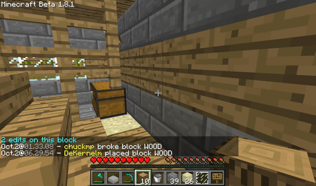 1. ChuckMP destroyed 2 blocks of a house and then placed an unlocked signI sincerely doubt chuck would destroy a house. I do know that he entered one though. That does not justify the reaction. Especially considering the shop was built and owned by me. It doesn't matter now though. Not even one day in town, an injustice was done over night. We will not be returning regardless of banishment.